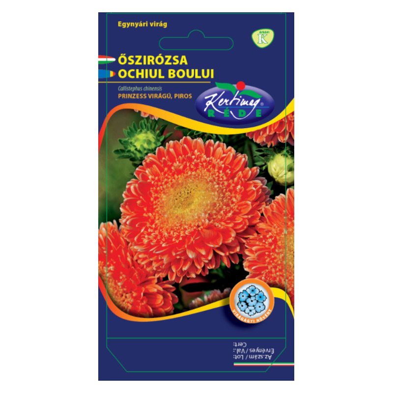 Őszirózsa (Callistephus chinensis) Prinzess piros (1 g) Vágásra az egyik legalkalmasabb fajtatípus: 70-80 cm magas és erős szárú. A szállítást is jól bíró, tömött virágzatokat nagyszámú csöves virág alkotja. [...] Részletek