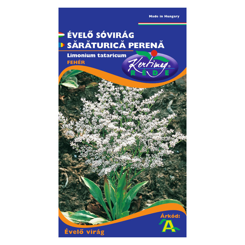 Sóvirág (Limoneum sinuatum) fehér (0,5 g) Nagy tömeget adó, kiváló szárazvirág. A növény 50-70 cm magas, a virágok élénk színe száradás után is megmarad. Vetés márciusban, virágzás júliustól szeptemberig. A virágokat teljesen nyílott állapotban, tőből vágjuk. [...] Részletek