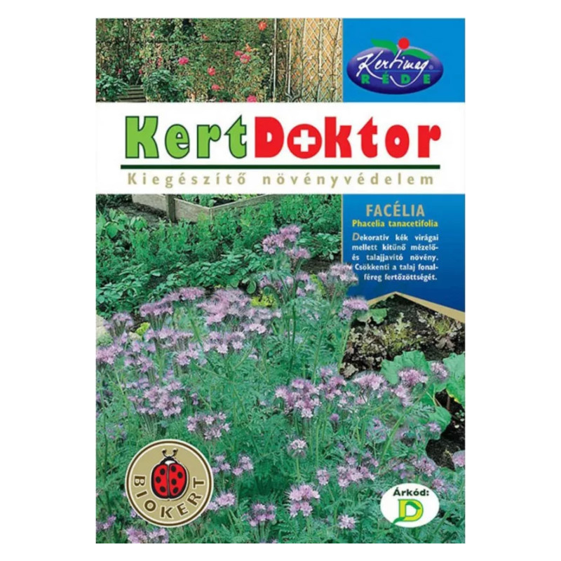 Facélia, mézontófű (30 g) (Phacelia tanacetifolia) Dekoratív kék virágai mellett kitűnő mézelő- és talajjavító növény. Nagy zöldhozama és szerteágazó finom gyökérzete következtében kedvelt zöldtrágya. Termesztésekor a talajban élő fonalférgek, a nematódák erősen gyérülnek. [...] Részletek