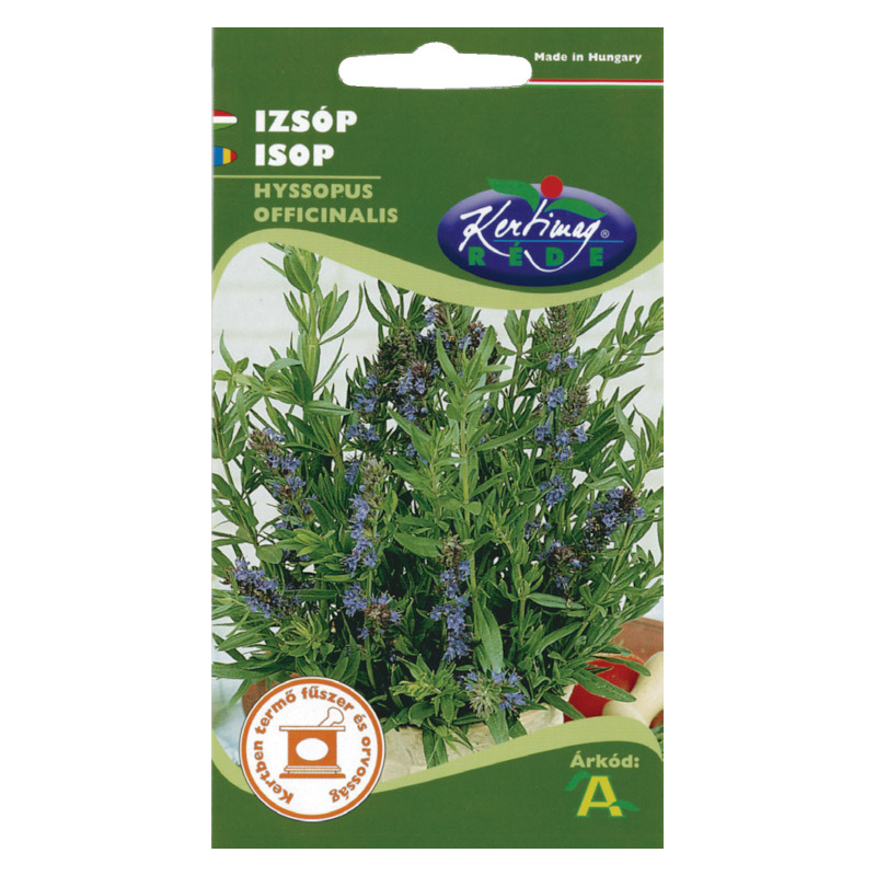 Izsóp (Hyssopus officinalis) (1 g) A középkor jellegzetes fűszere, mely napjainkban újra kezd elterjedni. Évelő, kissé kámforos illatú, 40-50 cm magas félcserje. Virágai kékek, rózsaszínűek vagy fehérek. Felhasználás: Leveleit, zöldség- és gyümölcssaláták, levesek és szárnyas húsok ízesítésére valamint teák készítésére használhatjuk. Görcsoldó, gyulladásgátló, nyálkaoldó, nyugtató és szélhajtó hatású. Tehetjük szobaillatosító keverékekbe, arcgőzölő- és fürdővízbe is. [...] Részletek