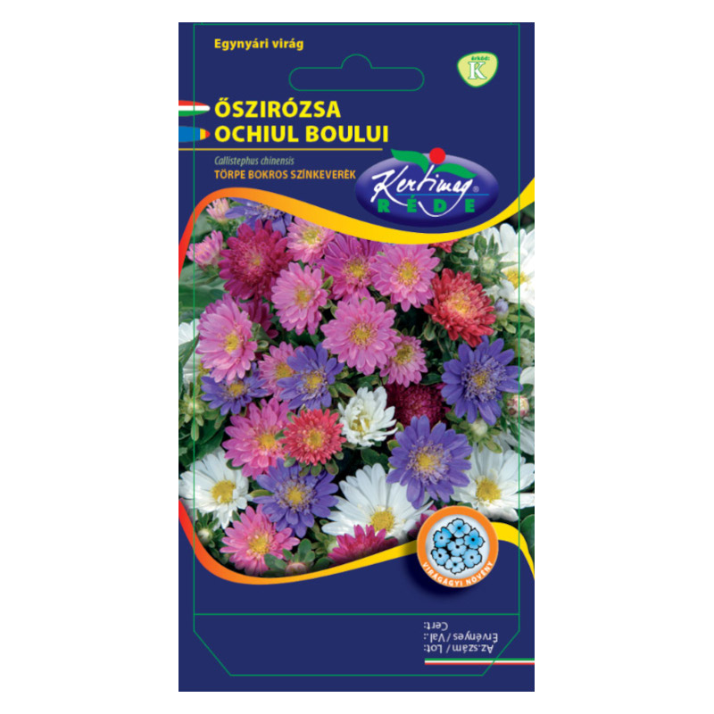 Őszirózsa (Callistephus chinensis) Törpe bokros színkeverék (1 g) Alacsony, 20-25 cm-es, bokros. Telt-, féltelt, változatos színű virágai a hajtások végén nyílnak. Cserepes értékesítésre vagy virágágyi kiültetésre alkalmas. [...] Részletek