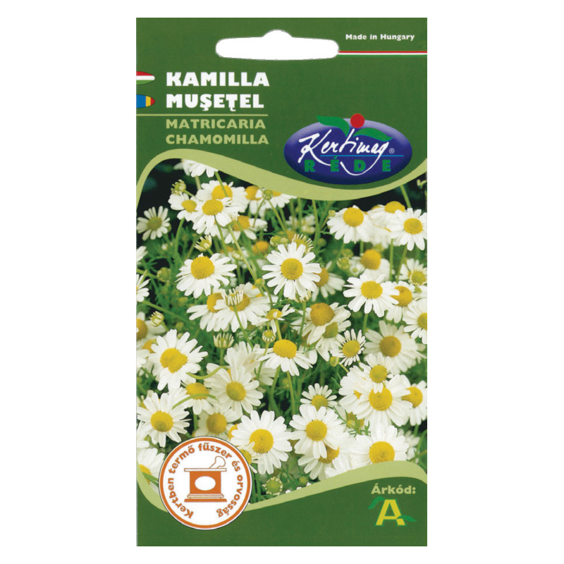 Kamilla (Matricaria recutita) (0,5 g) A legrégebben ismert gyógy- növényeink egyike. Csöves szárú, 10-30 cm magas egyéves, áttelelő növény. Napos termőhelyet igényel. Felhasználás: a szárított virágaiból készült tea gyulladáscsökkentő, fertőtlenítő és görcsoldó hatású. A kozmetikai iparban is gyakran alkalmazzák. Tipp: Tudta, hogy ha kamillát ültetünk a házikertbe, több káros rovart távol tartunk a veteményestől? [...] Részletek