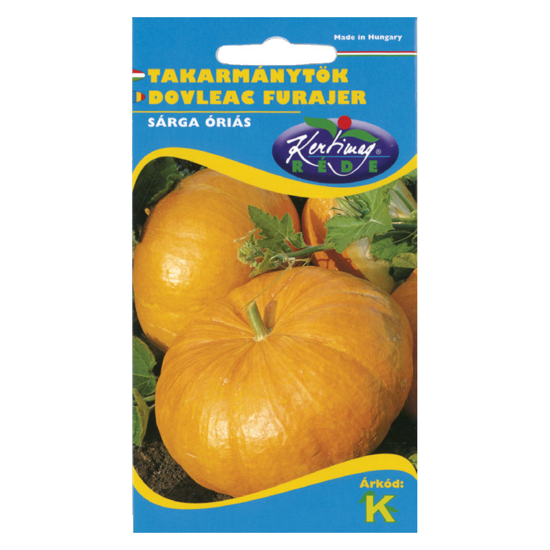 Takarmánytök Sárga óriás (50 g) Hosszú tenyészidejű, karotinban gazdag, ősszel és télen kitűnő takarmánynövény. Termése nagy, lapított gömb alakú. Tápanyag- és vízigényes növény. Kisebb területen a kukorica köztes növénye is lehet. [...] Részletek
