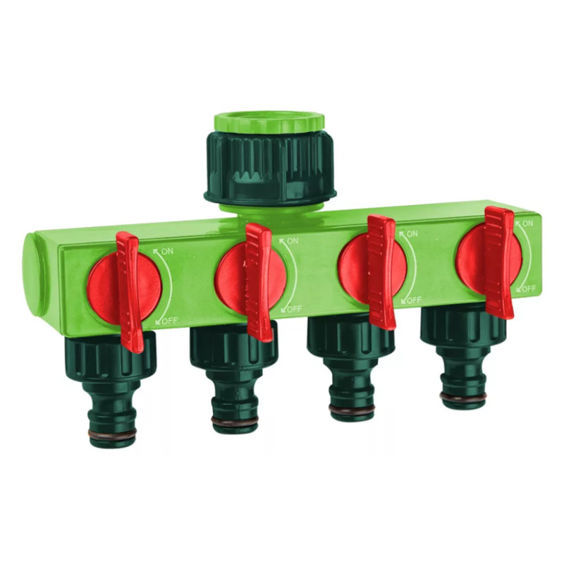 Csapcsatlakozó, 4 utas, külön áramlás elzárókkal, 1" csapcsatlakozó 3/4" adapterrel Négyutas elosztó, kimagasló minőségű műanyag, külön áramlás elzáró minden kimenetre, 1" csapcsatlakozó 3/4" adapterrel [...] Részletek