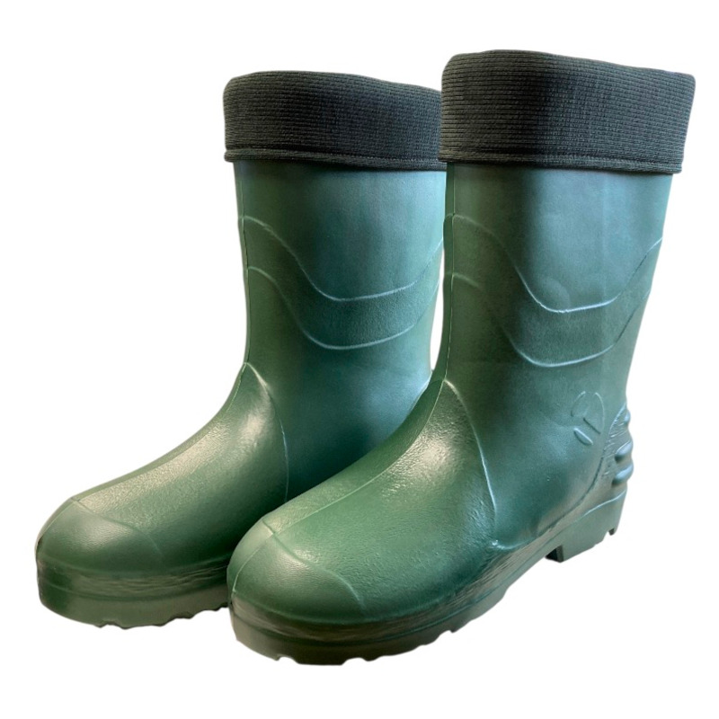 EVA csizma, női, rövid szárú, zöld, bélelt (38) Ez a csizma ideális választás mezőgazdasági munkákhoz, kertészkedéshez és bármilyen olyan tevékenységhez, ahol a láb védelme és kényelme kiemelten fontos. Az EVA habból készült bélelés kényelmes viseletet biztosít hosszú napok során, a csizma tartós és időjárásálló anyagból készült, ami ellenáll a nedvességnek és a különböző környezeti hatásoknak. EVA habból készült csizmáink, rendkívül magas hőszigetelő képességűek, és pehelykönnyű súlyúak. Az anyag szivacsos szerkezetének köszönhetően nem törik és hidegben is rugalmas marad. Magasság 27 cm [...] Részletek