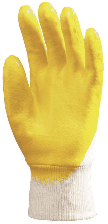 Tenyéren, ökölcsontig mártott sárga nitril kesztyű (10) Univerzális használatra szánt kesztyű Ecoline változata mechanikai ártalmak ellen. Pamutra ökölcsontig mártott sárga nitril szellőző kézhát, gumírozott mandzsetta. [...] Részletek