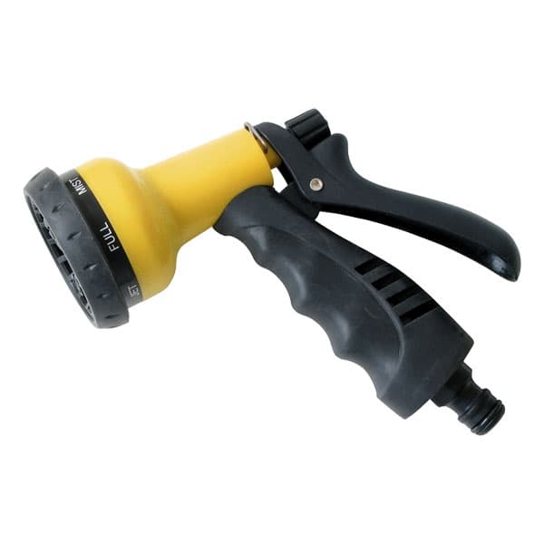 Pisztoly szórófej, ergonomikus, műanyag 7 féle sugár, kuplung csatlakozóval Gyorscsatlakozós, műanyag pisztoly szórófej, locsoló, amely 7 állású vízsugár állítási lehetőséggel van szerelve. [...] Részletek