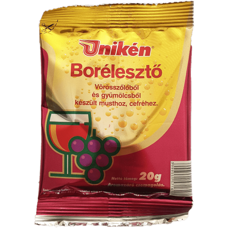 Unikén Borélesztő vörös (20 g) Normál erjesztési körülmények között megbízhatóan alkalmazható fehér és vörösborok biztonságos kierjesztéséhez. Az erjedés beindulása nagyon gyors, ezáltal gyorsan túlnövi a vadélesztőket. Használatával tiszta ízű, egészséges borokat kapunk. [...] Részletek