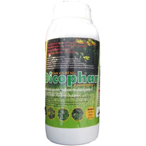 DICOPHAR (500ml) Gyomirtó permetezőszer kultúrgyep gyomirtására, magról kelő és évelő kétszikű gyomnövények ellen. A 4 hatóanyag kombinációja gyakorlatilag az összes gyepeknél előforduló évelő és magról kelő kétszikű gyomnövényt elpusztítja. [...] Részletek