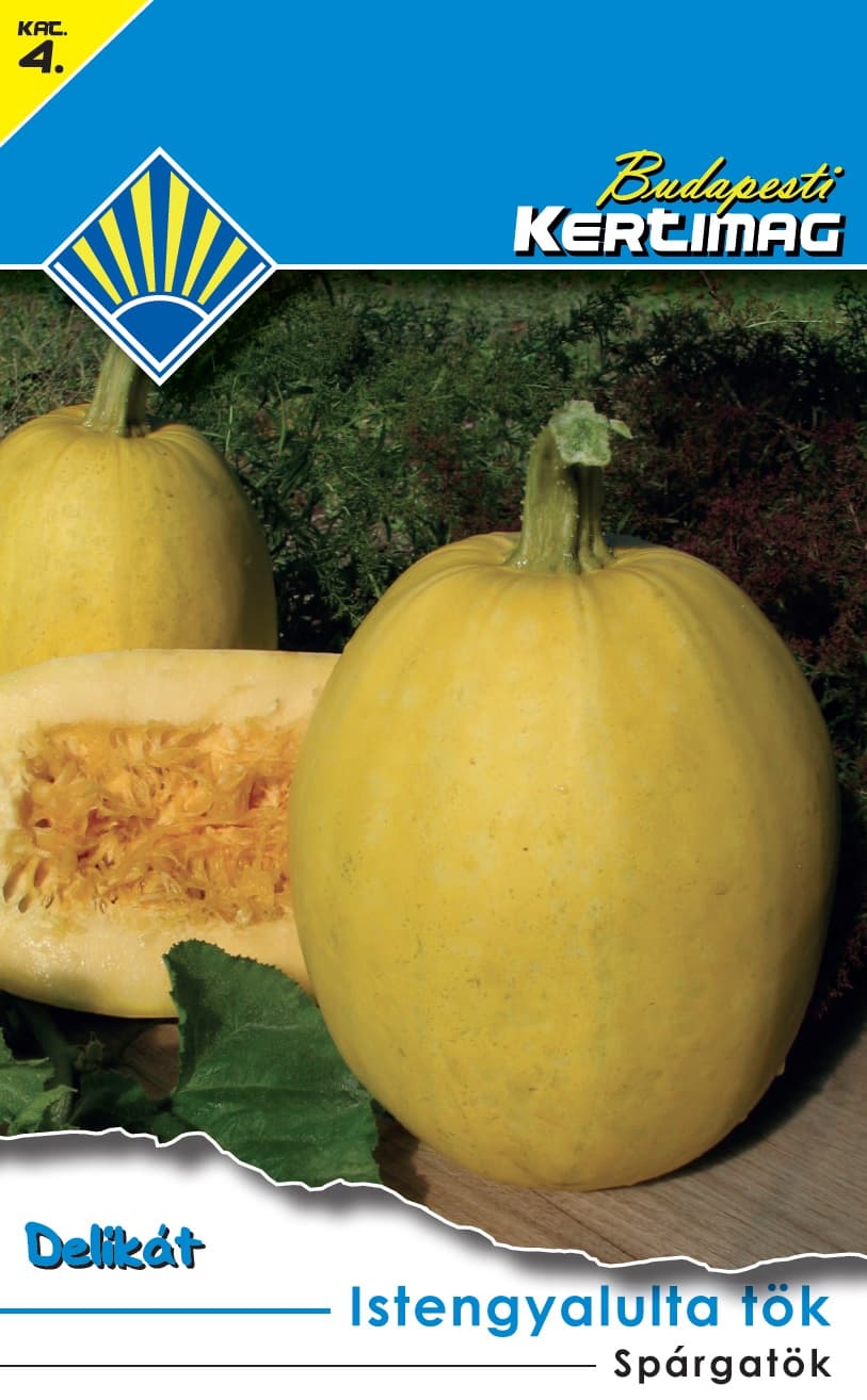 Spárgatök Istengyalulta tök (3 g) Indátlan fajta, termése hangeres, világossárga. Húsa 30 perces sós vízben történő főzés után szétesik és mint a spagetti, kanállal kiszedhető. [...] Részletek