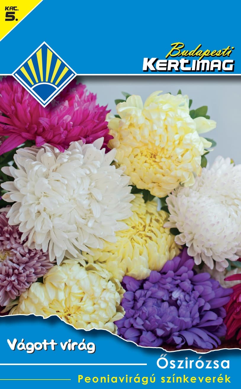 Őszirózsa Peoniavirágú színkeverék (0,5 g) Vegyes virágágyak díszítésére ajánlott, egynyári növény. Jó vízáteresztő képességű, tápanyagokban gazdag talajt, napsütötte fekvést igényel. Olyan helyre ültessük, ahol előző évben nem volt őszirózsa. [...] Részletek