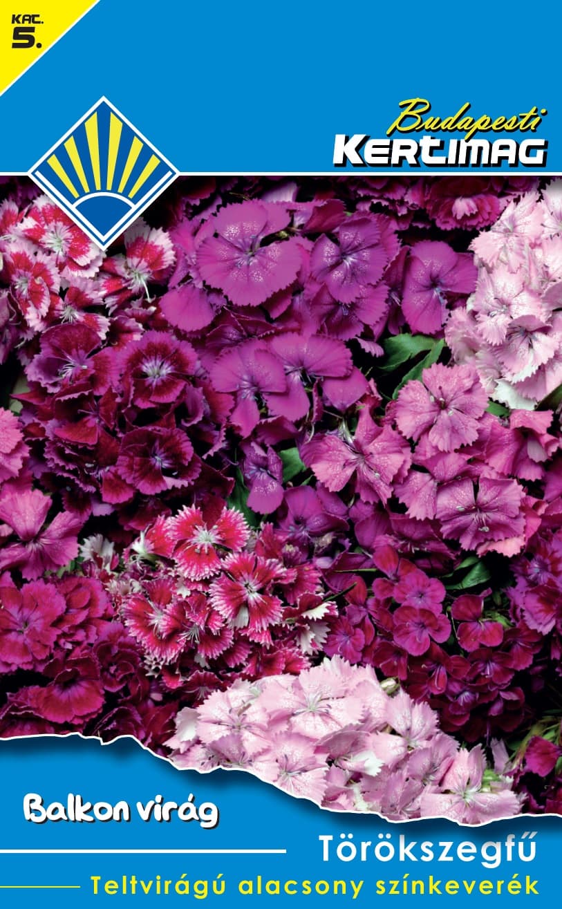 Törökszegfű Teltvirágú alacsony színkeverék (0,2 g) Közkedvelt, kétéves virág. Balkonok, szegélyek, kőedények díszítésére ajánlott. Legjobban a tápdús talajt és a napos fekvést kedveli. [...] Részletek