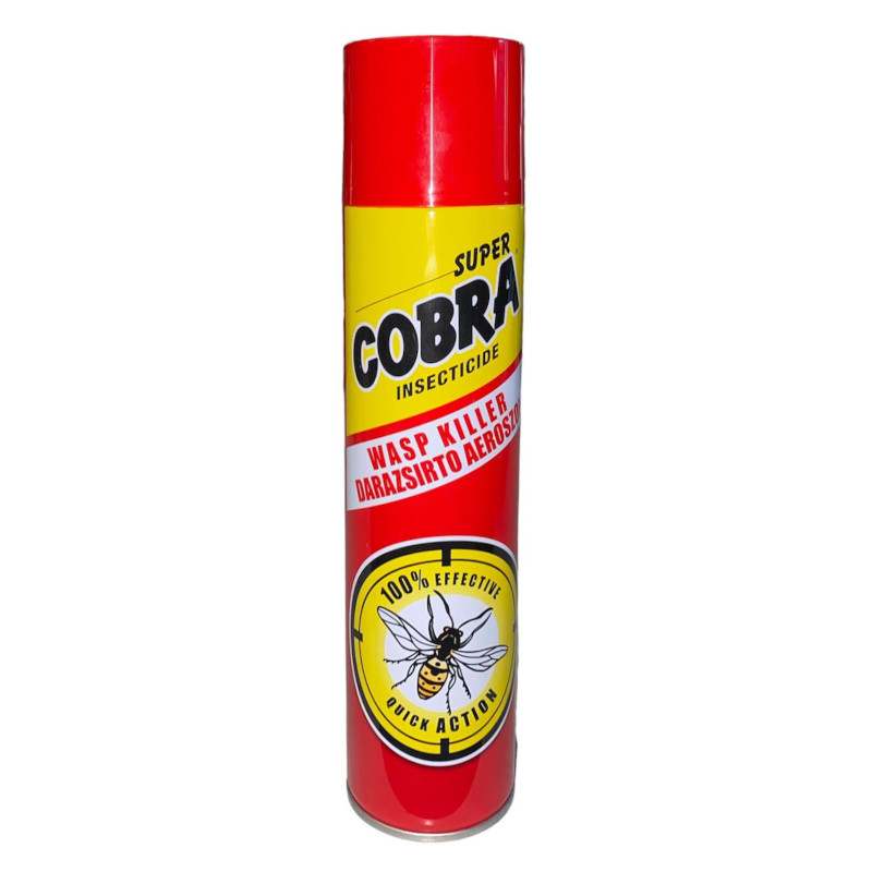 Cobra Super darázsirtó aerosol (400 ml) A Super Cobra spray darazsak ellen azonnali és hosszan tartó hatást fejt ki minden repülő rovarra (legyek, szúnyogok, darazsak, darazsak, lepkék, molylepkék stb.) mind beltéren, mind kültéren. Azonnali védelmet nyújt a darazsak ellen Az egész lakásban (konyha, hálószoba, fürdőszoba, pince) használható [...] Részletek