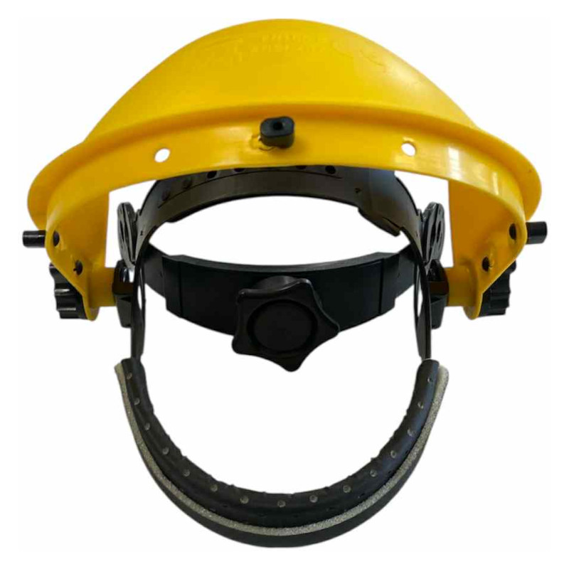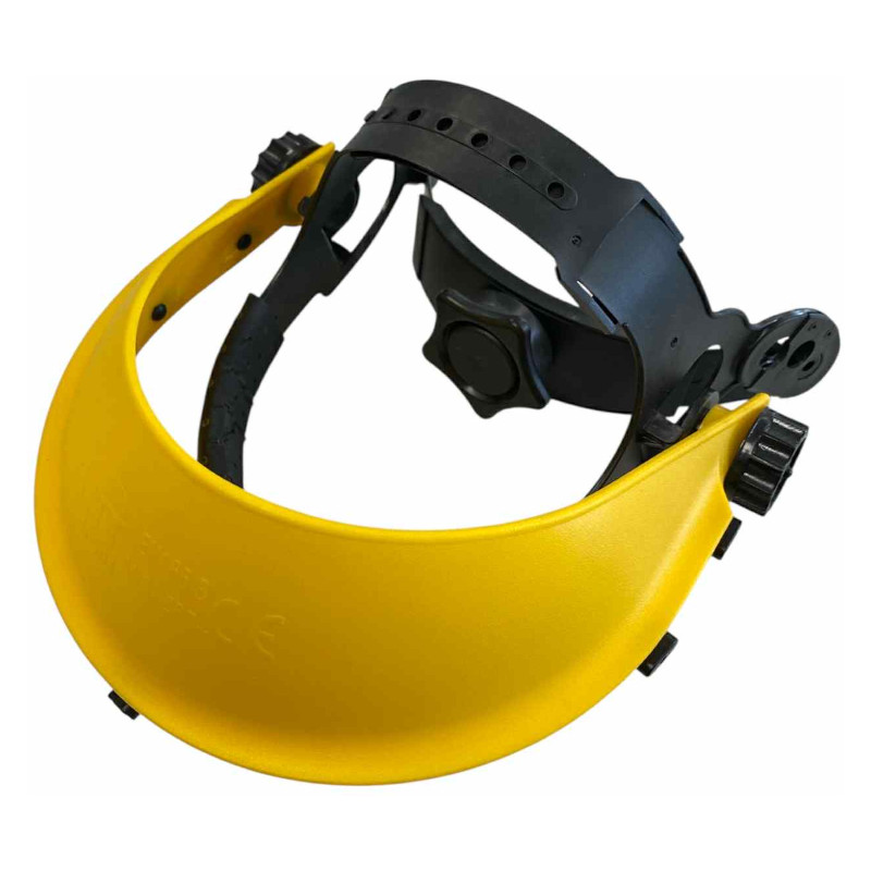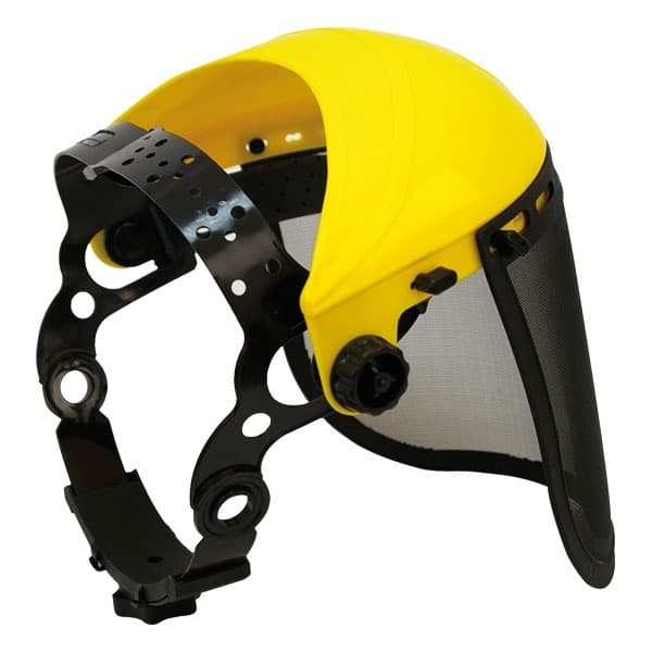 Szitaszövettes arcvédő, műanyag állítható fejméretű homlokpánttal, fűnyíráshoz illetve minden olyan tevékenységhez, ahol fontos, hogy megakadályozzuk a repülő kisebb szilárd tárgyak szembe kerülését.