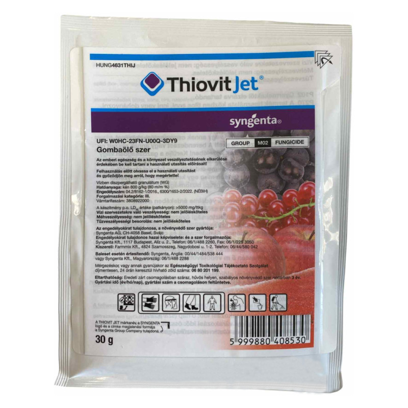 - A Thiovit Jet természetes anyag, kén, így biotermesztésben is alkalmazható 6?7 napos permetezési fordulókkal.