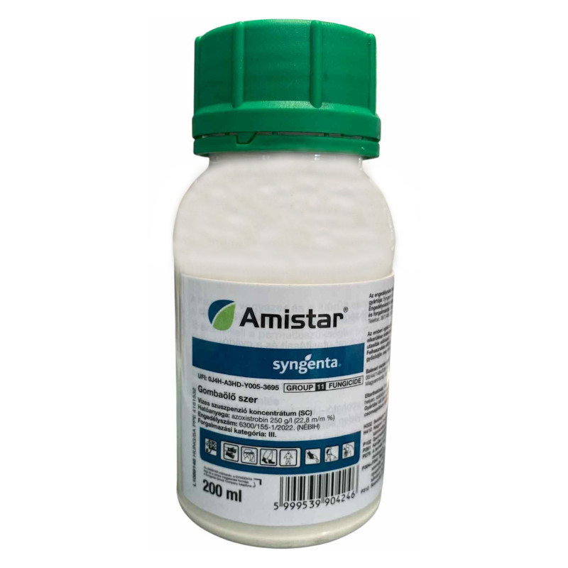 Hozamtöbblet és minőségbiztosítás a természet erejével. A gombasejten belül a gomba létfontosságú szervében, a mitokondriumban fejti ki hatását. A mitokondriumon belüli két koenzim, a citokróm B és C1 között lévő elektronszállító rendszer működését gátolja. Ezzel megakadályozza a gomba szempontjából létfontosságú energiaképzést, valamint ezzel együtt a gomba légzését is. A gombaölő szerek között ? új hatásmódjának köszönhetően ? olyan kórokozók ellen is jó hatékonyságot mutat, amelyek egyéb gombaölő szerekkel szemben már toleránsak. Az Amistar egyedi tulajdonsága, hogy a szénhidrátok beépülését segíti, ezáltal a termésbiztonságot és termésmennyiségét növeli.