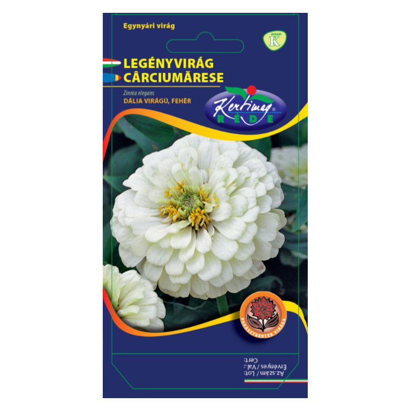 Legényvirág (Zinnia elegans) Dália virágú fehér (2 g) Csoportosan ültessük kerítések mellé vagy évelőkkel társítva. Lepkecsalogató. Vágott virágnak is kedvelt. 20 fok hőmérsékleten egy-két hét alatt csírázik. [...] Részletek
