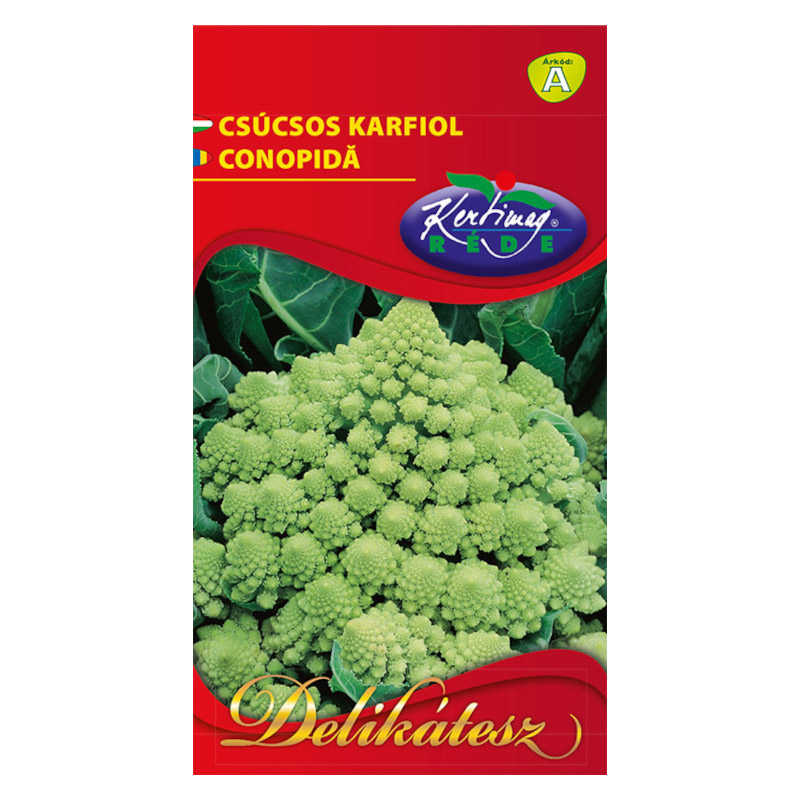 Karfiol csúcsos (0,5 g) Őszi termesztésre! Romanesco típusú, erőteljes növekedésű karfiol. Őszi termesztésre alkalmas, tenyészideje 100-110 nap. A rózsa élénkzöld tornyocskákból áll, melyek főzés után is megőrzik színüket. [...] Részletek