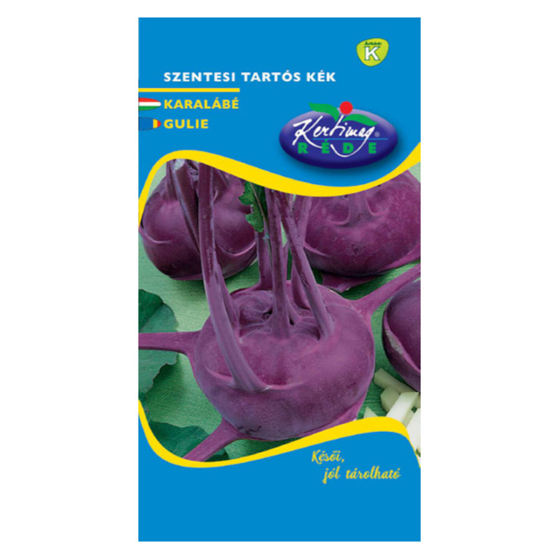 Karalábé Szentesi fóliás kék (2 g) Hideghajtatásra alkalmas, rövid tenyészidejű fajta. Gumója gömb alakú, kékeslila. Előnyös tulajdonsága, hogy nem fásodik, és repedésre nem hajlamos. Igen szép, tetszetős árut ad, átmérője 6?10 cm. Friss fogyasztásra alkalmas. (A tasak kb. 500?520 szem vetőmagot tartalmaz.) [...] Részletek