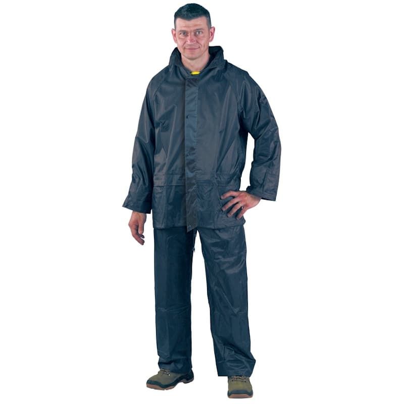 Orkán esőruha, 2 részes, kék (XL) Poliészterre mártott lágy, rugalmas PVC, 0,18 mm vastag, varrott plusz hegesztett kétrészes orkánruha (kabát+nadrág). [...] Részletek