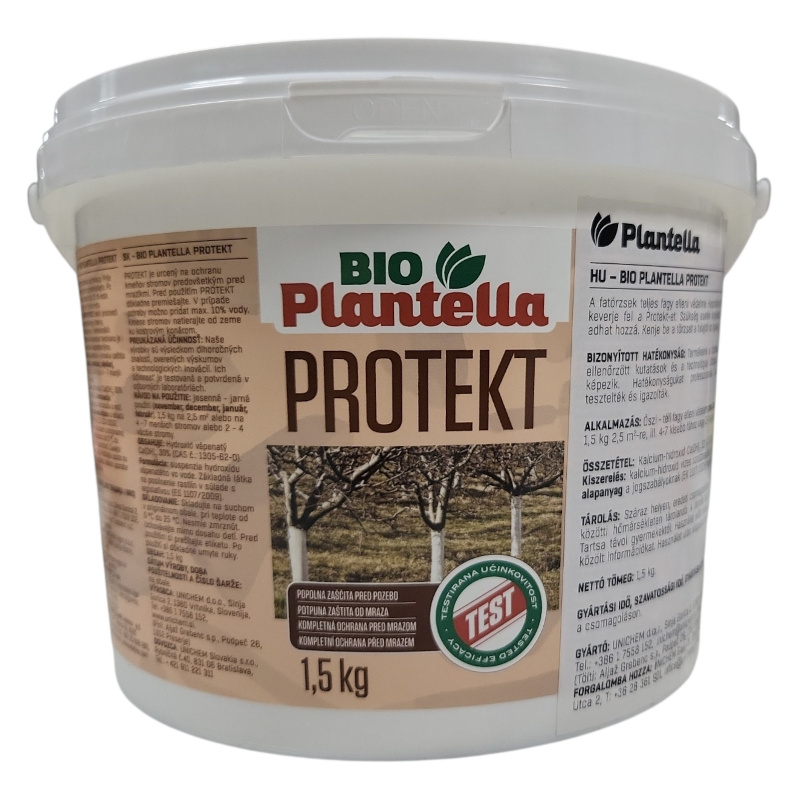 Bio Plantella Protekt fagy- és biológiai védelem (1,5 kg) Mészalapú természetes védőréteg a tavaszi fagy ellen és biológiai védelem a különböző fakártevők, gombás betegségek, mohák és zuzmók ellen. [...] Részletek