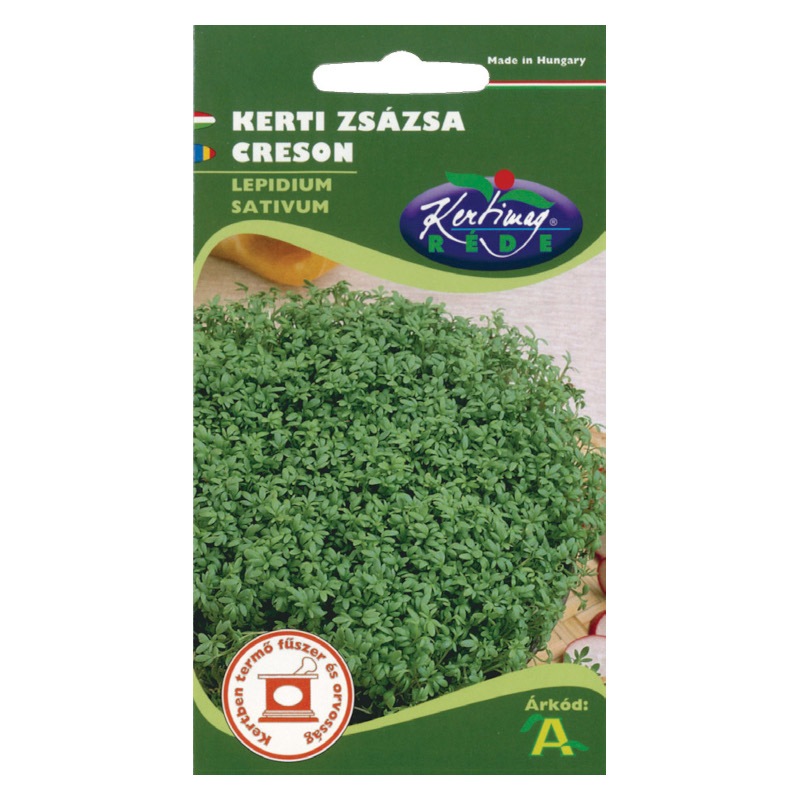 Kerti zsázsa (Lepidum sativum) (2 g) A legrövidebb tenyészidejű zöldségnövény. A vetés után már 12-14 nappal fogyasztható, télen a konyhaablakban is termeszthető. Tálcán vagy szűrőpapíron is kicsírázik. Felhasználás: tormához hasonló, kellemesen csípős íze van. Magas C-vitamin-tartalmú, frissen vajas kenyéren és salátákban fogyasztható. A népi gyógyászatban is használják: vértisztító, gyulladáscsökkentő, emésztést elősegítő hatású. [...] Részletek