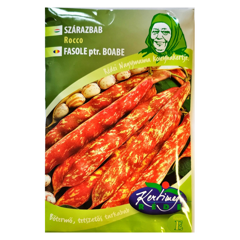 Kifejtőbab tarka Rocco (250 g) Korai érésű, bőtermő, nagy magvú, fürj típusú tarkabab. Kifejtő- és szárazbabnak is kiváló. A bokor 40-50 cm magas, hüvelye 10-12 cm hosszú, 4-7 db szemet tartalmaz. A hüvely és a mag is drapp alapon bordó foltos. [...] Részletek