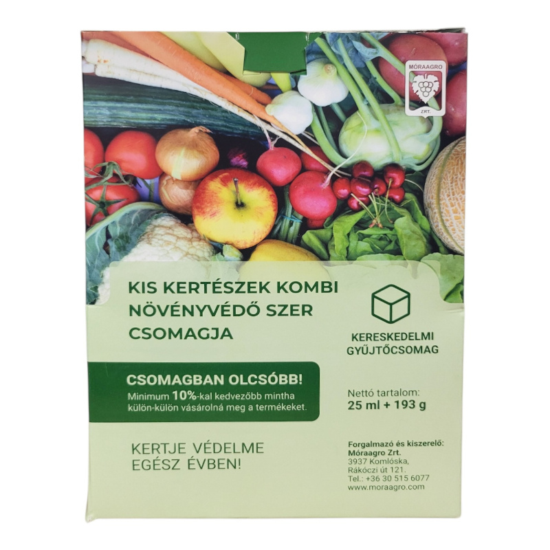 Kis kertészek kombi növényvédő szer csomagja Kompináltgomba- és rovarölő szer csomag.Csomag tartalma: Agrizole 250 EC - Gombaölő - 2 x 2.5 ml Bordómix DG - Gombaölő, Baktériumölő - 2 x 30 g Microthiol Special - Gombaölő - 3 x 30 g Mospilan 20 SG - Rovarölő - 2 x 4 g Nissuron 10 WP - Atkaölő - 1 x 20 g Tazer 250 SC - Gombaölő - 2 x 10 ml [...] Részletek
