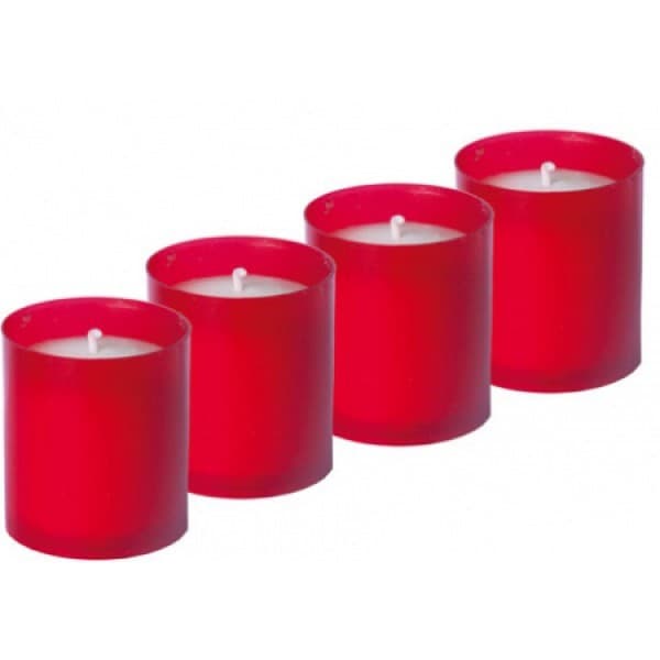 Mécsesbetét, piros műanyag tokban, 5 cm (4 db) 4 db-os, 5 cm-es mécsesbetét, piros, műanyag tokban. [...] Részletek