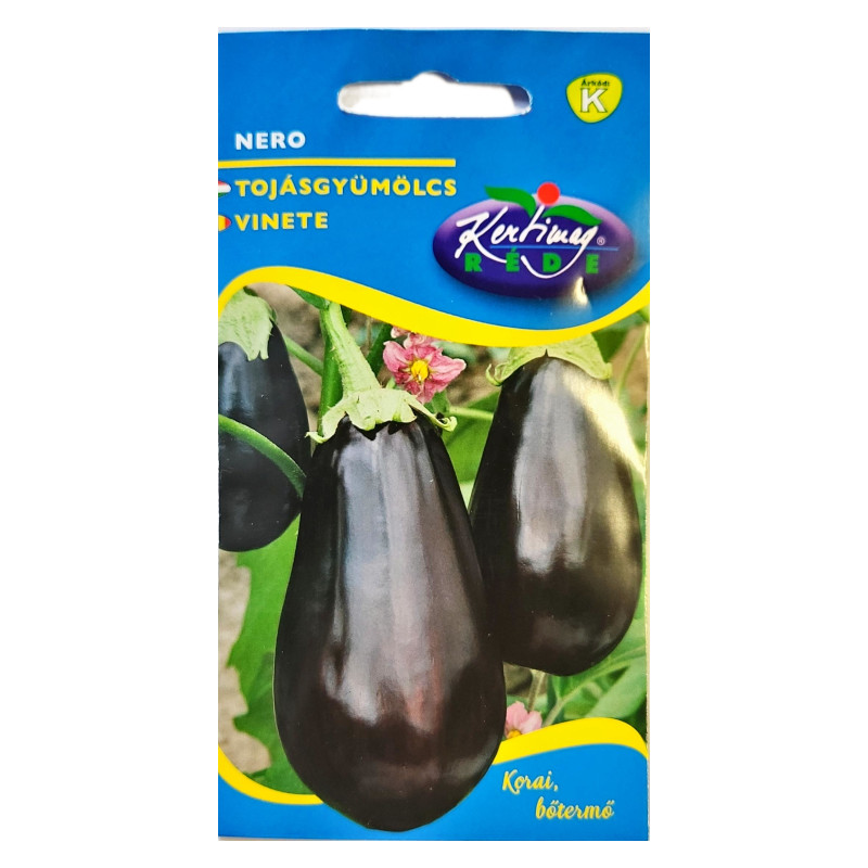 Tojásgyümölcs Nero (1 g) Kiváló minőségű szabadföldi fajta. Félmagas növekedésű bokrot képez. Termése hosszúkás, szépen csillógó, sötétlila héjszínű. Húsa sárgásfehér, finom szerkezetű, nem keserű ízű. Átlagtömege 300 g. Betegségekkel szemben nem fogékony. [...] Részletek